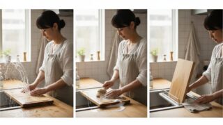 木製まな板のお手入れ方法を徹底解説。日々の洗い方から、頑固なカビや黒ずみ対策、消毒方法まで網羅した、これが決定版の木製まな板のお手入れ方法です。ヒノキやイチョウなど木の種類ごとの特徴と選び方も紹介。愛用のまな板を長く清潔に保つ秘訣がわかります。