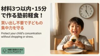 共働きで時間がないママ必見!帰宅後15分&材料3つ以内で作れる塾前軽食レシピを紹介。スーパーの買い出し不要で夕飯にも響かない、学習を頑張る子どもの集中力を守る簡単メニューとお悩み解決FAQを網羅しました。