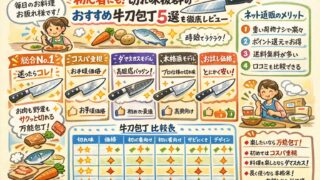 毎日の料理や下ごしらえを劇的に楽にする、おすすめの牛刀包丁5選を徹底比較!貝印の関孫六、藤次郎、ストーンバリアなど、忙しいママにぴったりの切れ味抜群でコスパの良い人気包丁をご紹介。選び方のポイントも解説します。