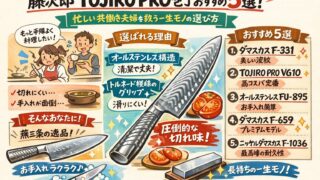 藤次郎 TOJIRO PROのおすすめ三徳包丁5選を徹底比較!共働きで忙しい方向けに、時短に繋がる切れ味と手入れの簡単なオールステンレスモデルを紹介。一生モノの包丁の選び方がわかります。